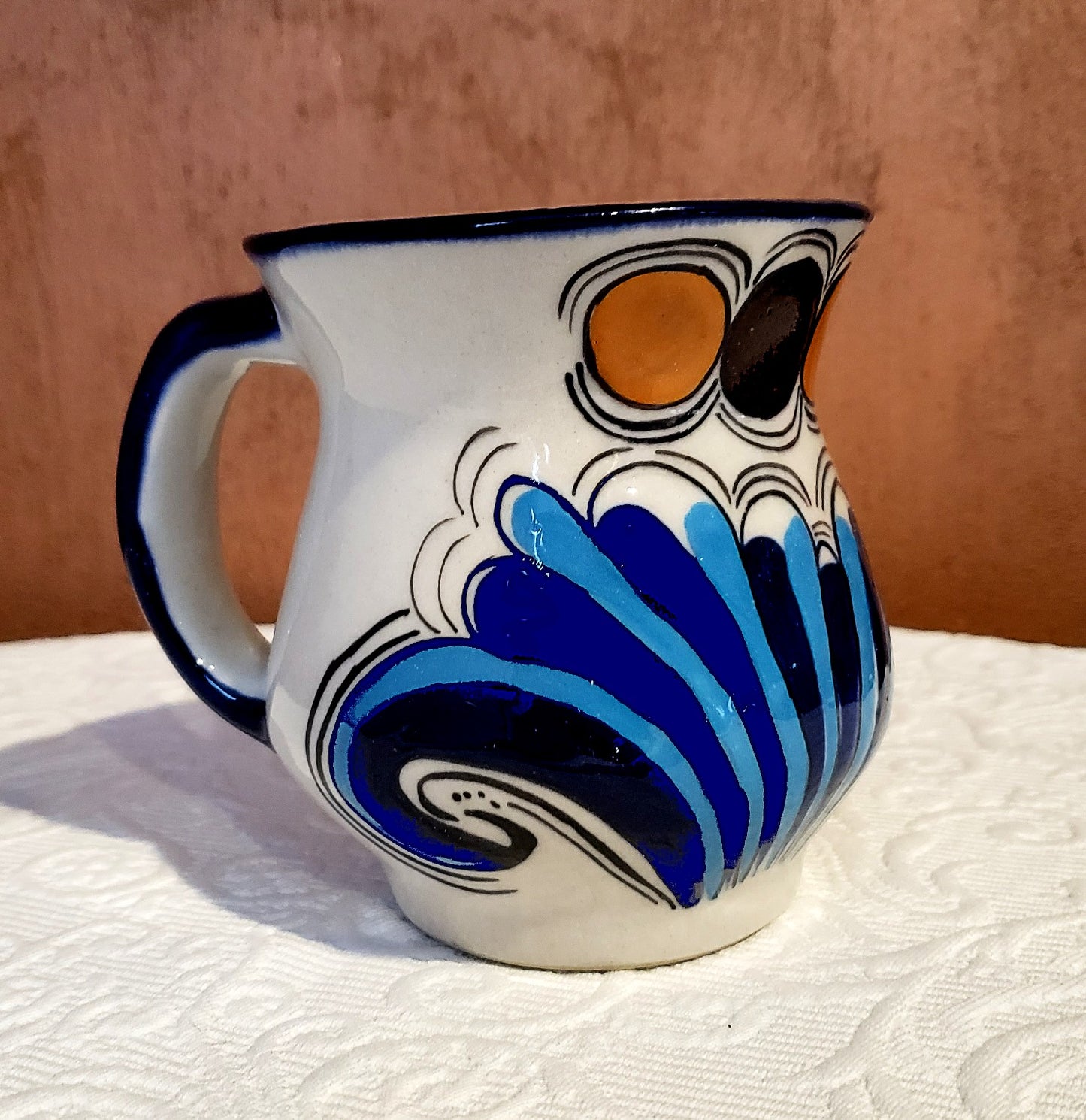 Our Fabulous 16-18 oz. Hand Painted, Hand Thrown Ceramic "Wave Mug." Lead-free, dishwasher and microwave-safe. They are 4.5 inches tall.