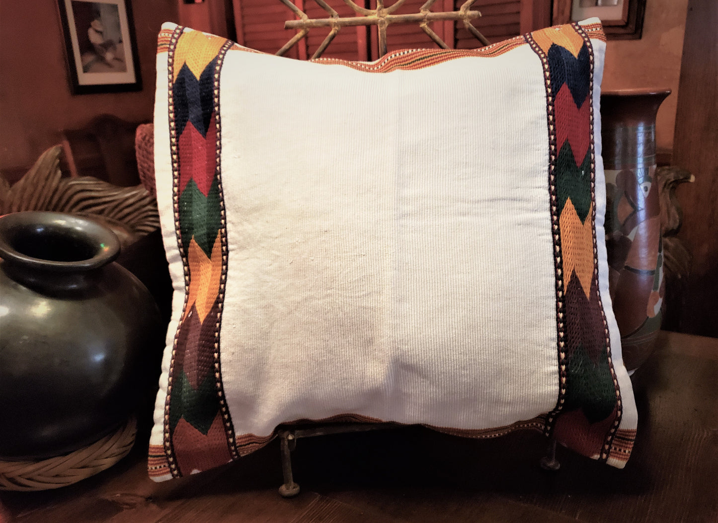 Handloomed Ivory Zacualpa Throw Pillow Cover. Beautiful Ivory with a woven decorative band at the top and bottom. Cotton. Fair Trade.