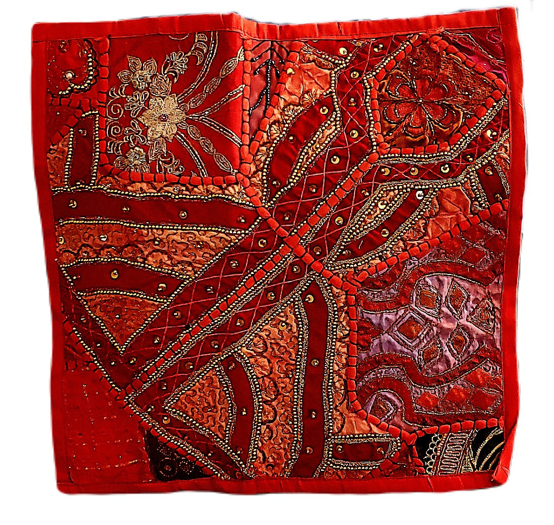 Jeweled, Mirrored & Embroidered Moti Gala Patchwork Pillow Cover. Approx. 16 x 16 inches, Zipper Back. Cotton.