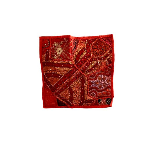The mixed media embroidery combines beads, sequins, mirrors, and fine needlework embroidery. Red is the prominent color in these. The perfect Boho accent.