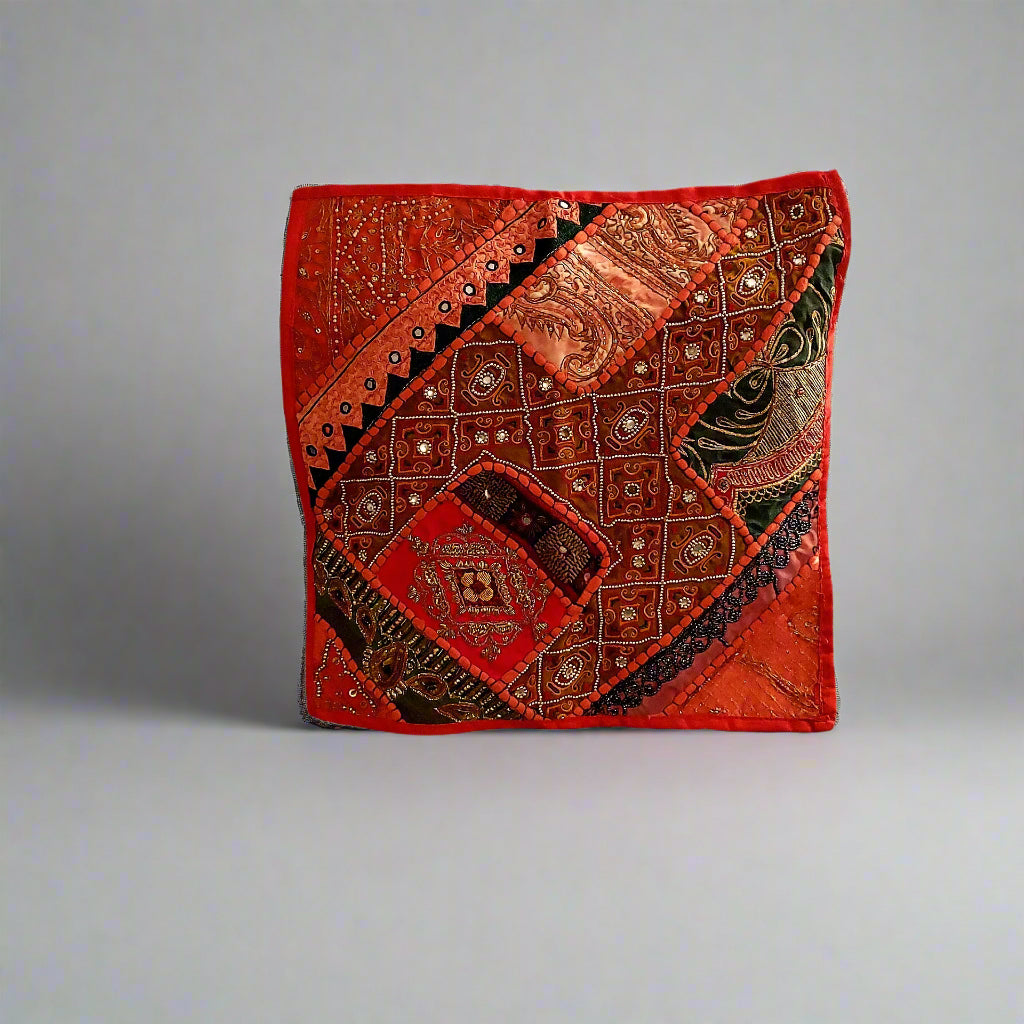 Jeweled, Mirrored & Embroidered Moti Gala Patchwork Pillow Cover