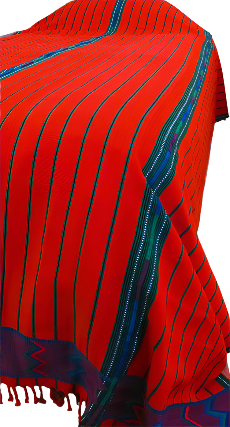 Handmade King Size [108 x 95] Red Zacualpa Bedspread & Two Matching Throw Pillow Cover Set. Beautiful Red with a woven decorative band at the top and bottom. Cotton. Matching Pillow Covers are 18 x 18 inches. Fair Trade.