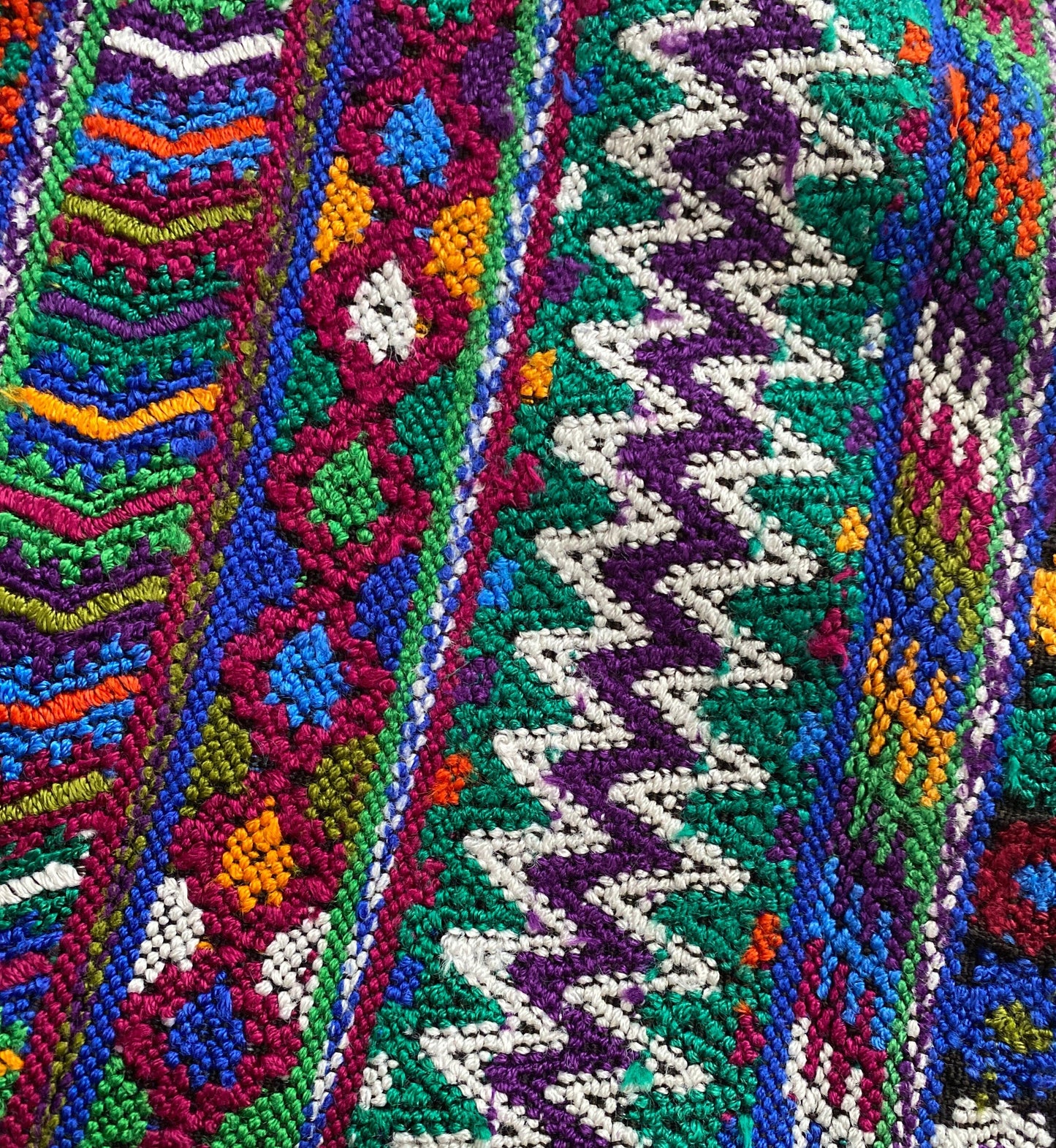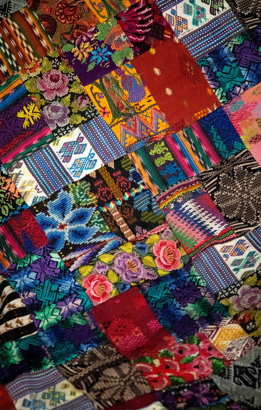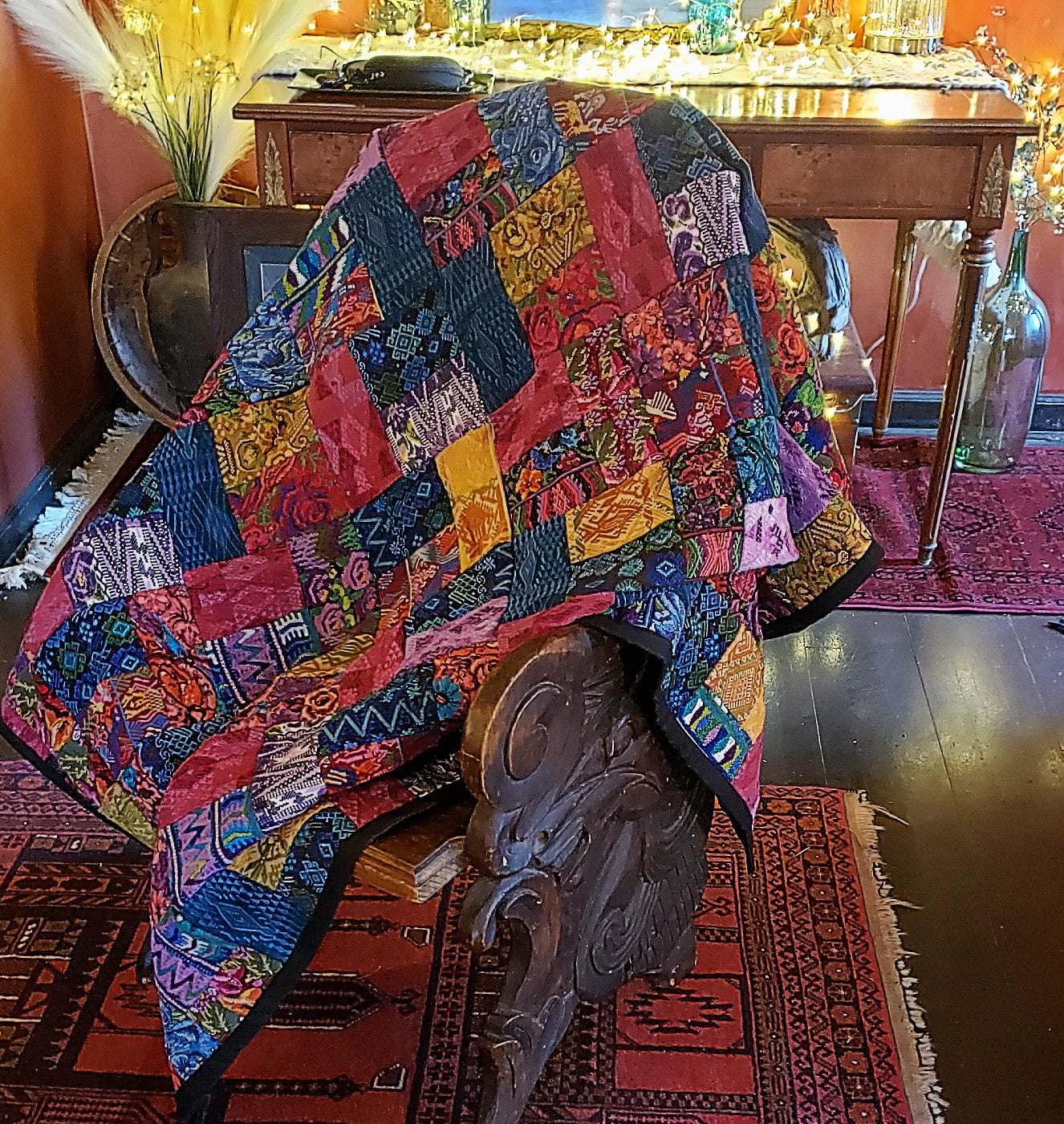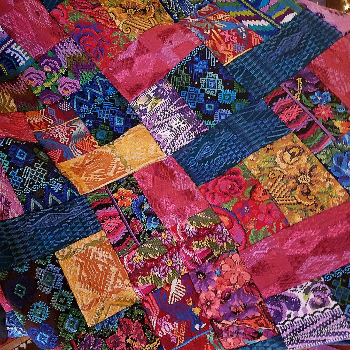 Fabulous Guatemalan Mixed Huipile Embroidered Lap Blanket or Throw. Cotton. Each is made from a consistent blend of embroidered patches from Guatemalan Huipiles [Mayan Embroidered Blouse]. Each is beautiful, colorful, and unique! 60 x 50 inches. Perfect to curl up under. Cotton with a Cotton/Poly backing.