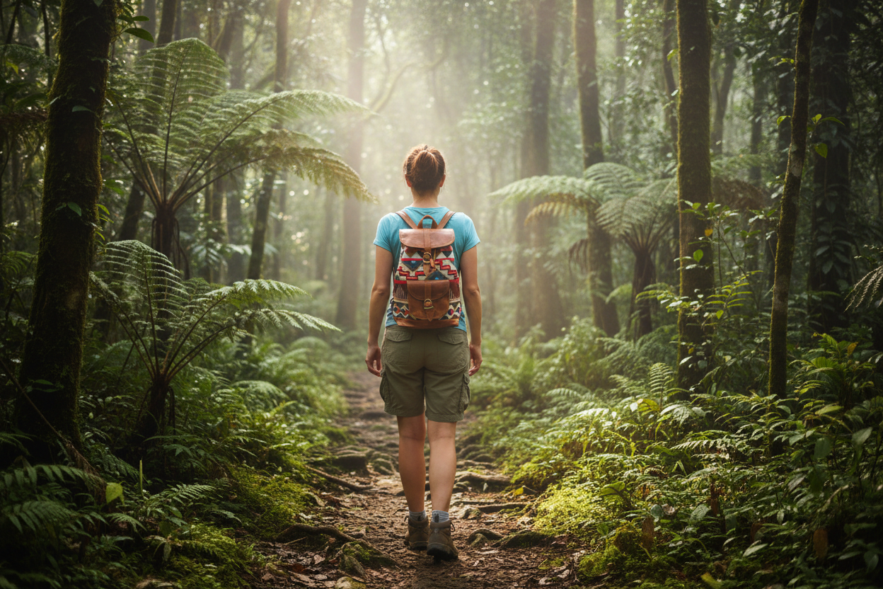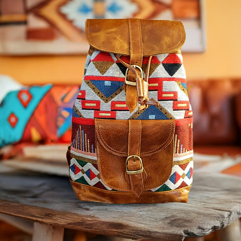 Southwest-influenced Leather and Jacquard Backpack Purse